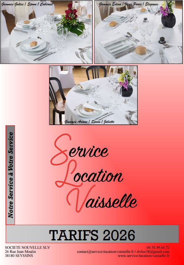 Service Location Vaisselle, à Seyssins, vous propose une gamme complète de vaisselle : assiettes plates ou creuses, plats, saladiers, etc. Que ce soit pour un mariage ou un anniversaire ou autres réceptions à Grenoble ou à Chambéry et dans toute l’Isère, nous sommes en mesure de vous offrir un service de qualité grâce à un stock important disponible immédiatement.